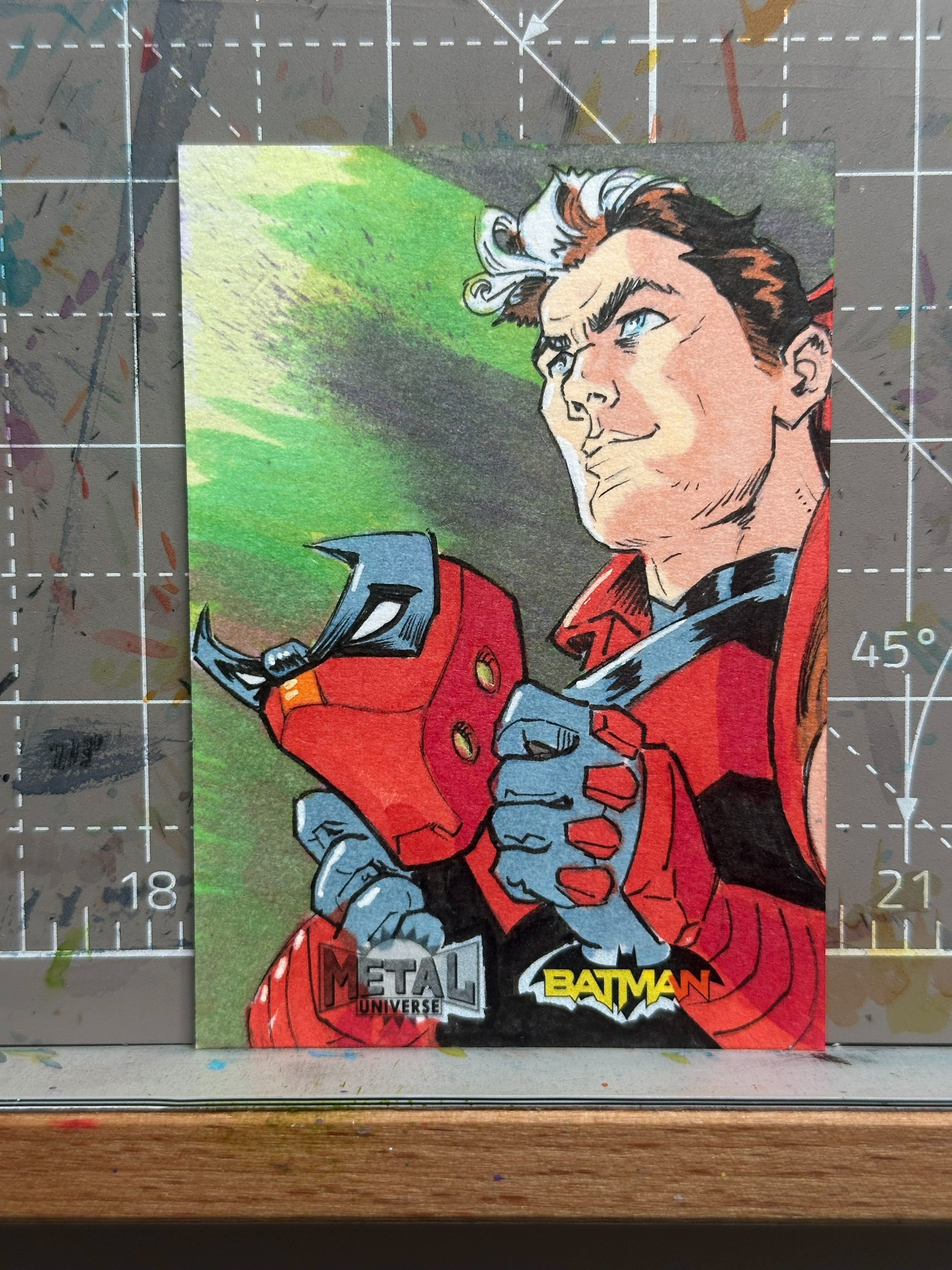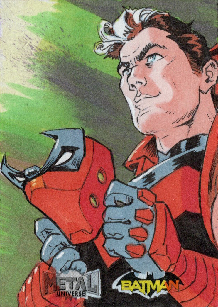 Well, punch reality and bring me back to life - the Red Hood Jason Todd is my sixth Sketch card for the Upper Deck Skybox Metal Universe Batman set.