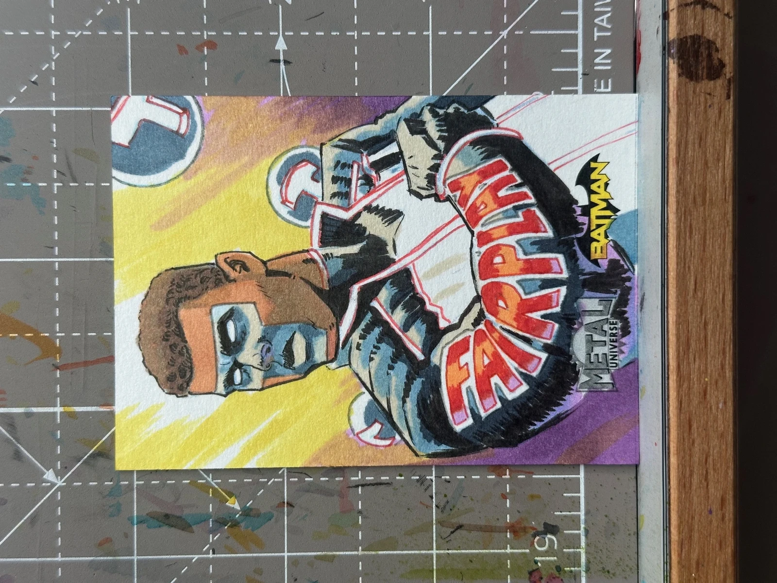 Why do I challenge myself like this? What kind of masochist would choose to draw all the details on Mr Terrific’s jacket? Upper Deck Skybox Metal Universe Batman sketch card. DM me to discuss what character you want on one of my limited artist proofs (AP). Commissions Open.