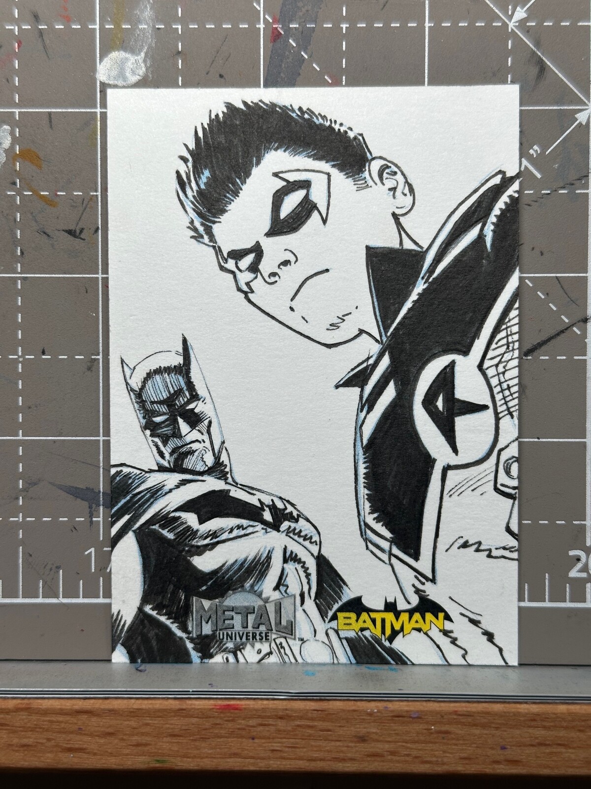 Batman and Robin! My fourth sketch card for the Upper Deck Skybox Metal Universe Batman features Damien Wayne.