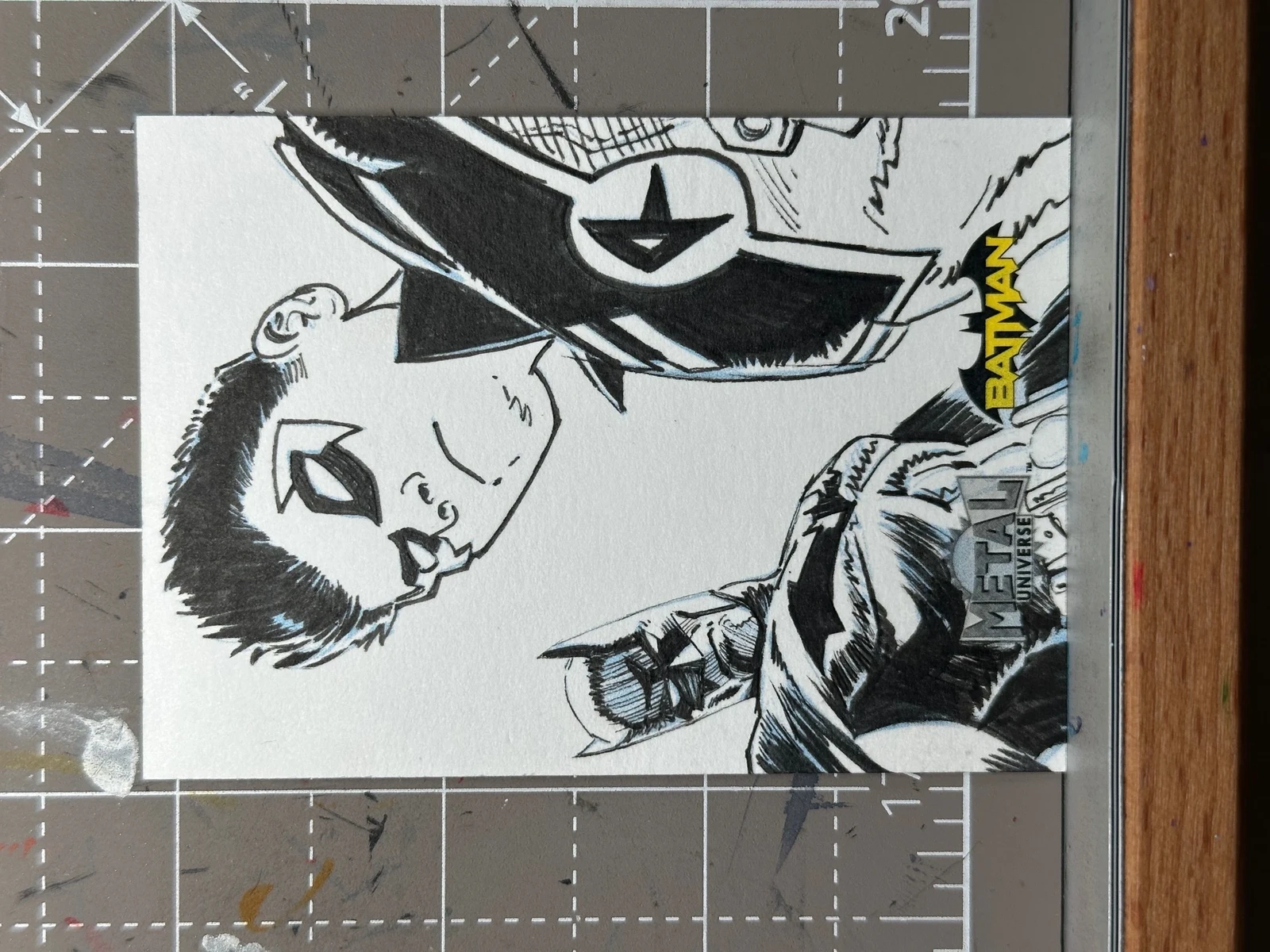 Batman and Robin! My fourth sketch card for the Upper Deck Skybox Metal Universe Batman features Damien Wayne.